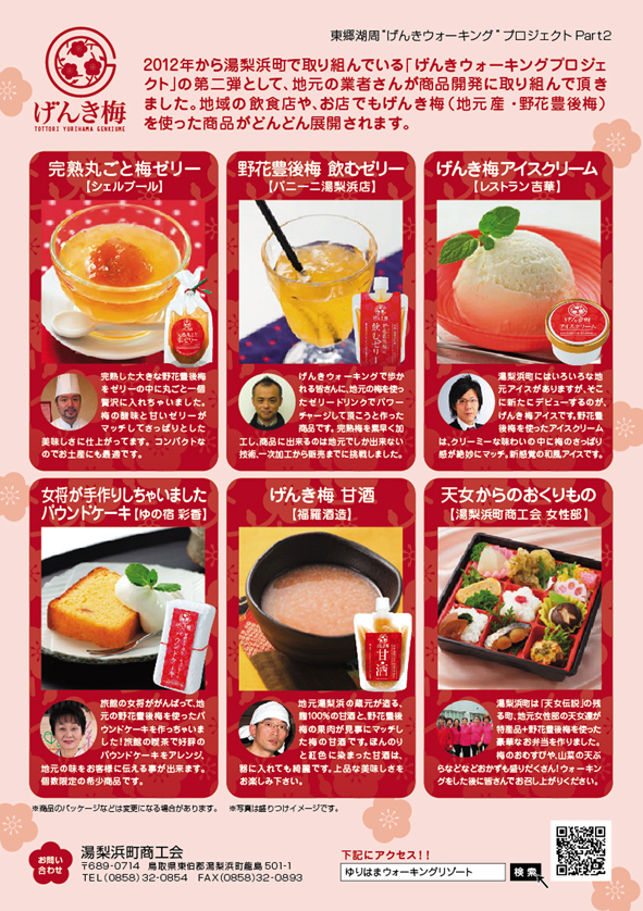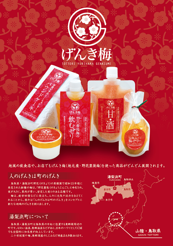 地域の事業者さんが関わる事で、湯梨浜町のいろんな場所で「げんき梅」の商品が見られるようになります。