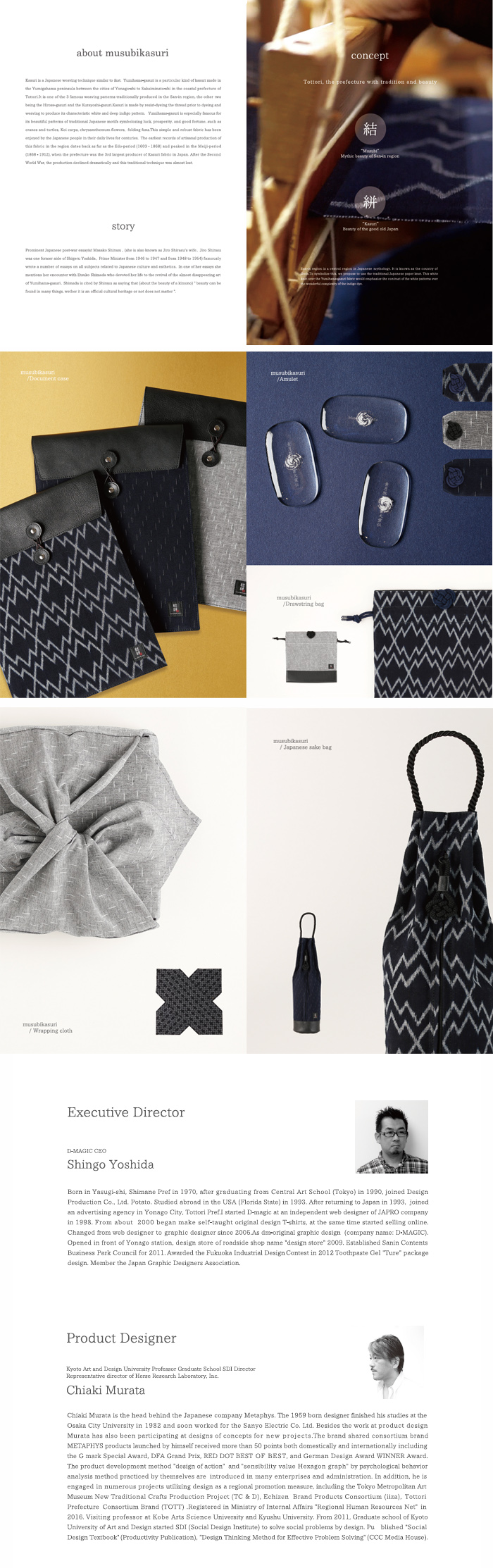 JAPAN BRAND 採択事業 結絣〜musubikasuri〜株式会社ピアベール様が事業主として採択された、JAPAN BRAND事業で、鳥取の地域資源である「弓浜絣」を使った仏具と生活雑貨の商品開発に取り組んだもの。