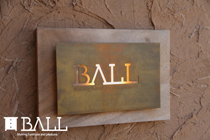 BALLはdmの元店長がオープンした天然無垢チークオーダーの家具屋さんです。お互いに良く知った仲ゆえに、相当に議論を交わし拘りをしっかり詰め込んだロゴデザインはシンプルでお客様にも親しんで頂けるデザインになりました。