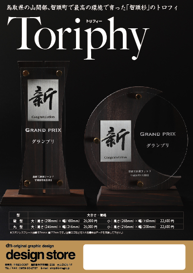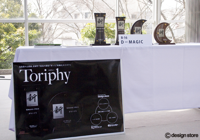 平成21年度にDーMAGICが鳥取県の経営革新計画を承認され、その年の「経営革新大賞」のトロフィ制作を依頼されたのがきっかけで、(株)サカモトを訪ねて出来たのがこのトリフィです。