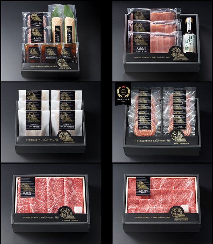 「大山物語」をコンセプトの部分から見直し、今までカタログ販売が中心だったため、パッケージデザインを重視されていなかった部分を改善し、送られた人も喜んで頂けるような高級感あるパッケージをオリジナルで制作。