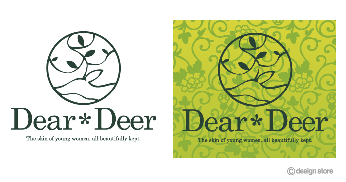 ロゴデザインは、鹿が森林の木の皮や葉っぱを食べてしまう事が原因で駆除されてしまう事から、新たに生まれ変わるという意味をデザインとした、また女性の肌も新たに生まれ変わって欲しいという意味も込めている。