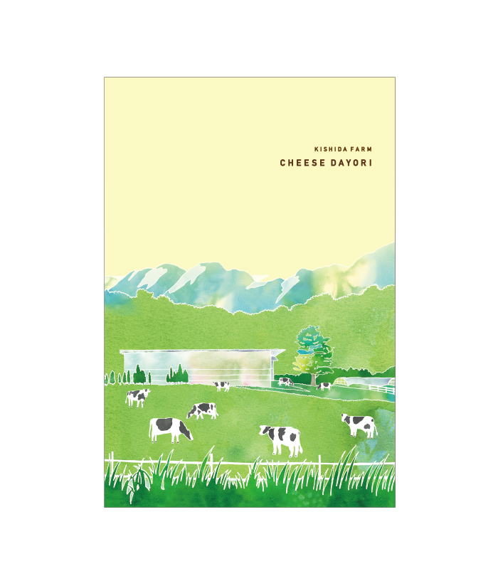 のどかな酪農の雰囲気と、雄大な大山の景色をイラストにしました。