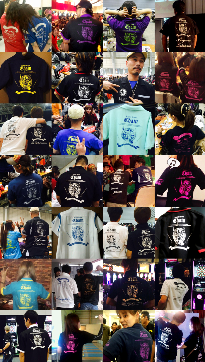 Darts Team Chain 2008年からお付き合いの始まった、西東京を拠点に関東近郊で活躍するダーツチーム「Chain」のユニフォームを作成させて頂いています。